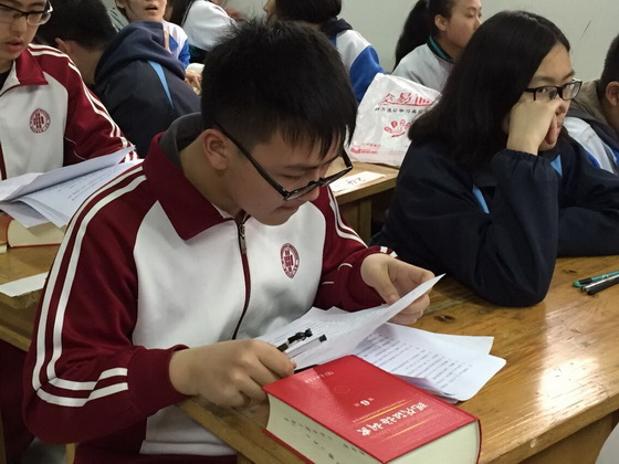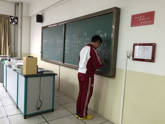参赛前,学校做好了充分的宣传工作并组织了校内选拔赛。比赛在各班推荐和自由报名的基础上进行,选出了由初2016届2班的吴昕怡,4班的张楠,6班的李圣泽,8班的姚怡泊和9班的刘若涵组成的参赛队伍。随后,在胡玮玮老师和林晓敏老师的指导下,5位学生进行了紧张的赛前培训及模拟训练活动。几位学生也极为认真,通过查找资料,查字典等方式,积蓄力量,积极应战。 赛后,学生们反响激烈,感触颇深,纷纷表示会在平时加强对汉字等传统文化的学习和积累。