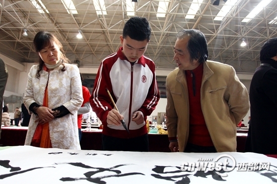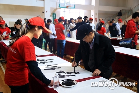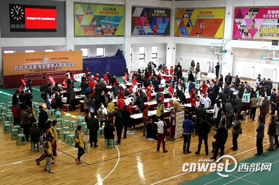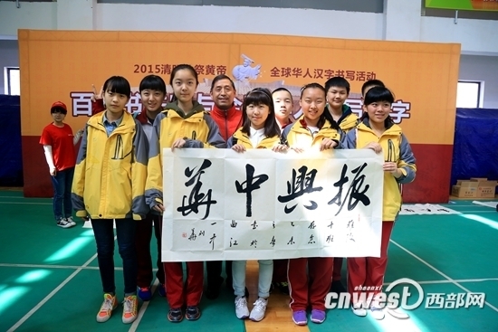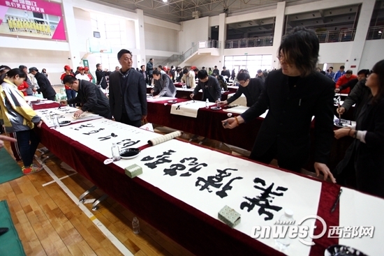 3月28日,“百名书法家与全球华人同写汉字”活动在西安曲江一中举行