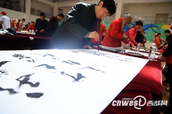3月28日,“百名书法家与全球华人同写汉字”活动在西安曲江一中举行。160余位书法家挥毫泼墨,用书法作品表达对人文始祖轩辕黄帝的景仰之情。黄帝陵是中华文明的精神标识,是全球华人的精神家园。“同根同祖同写汉字全球华人汉字书写活动”,旨在用“写汉字”这种最简单的形式,表达全球华人对黄帝文化的认同。