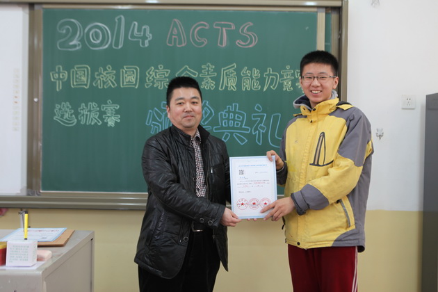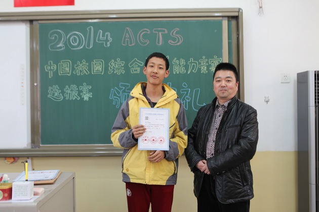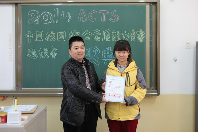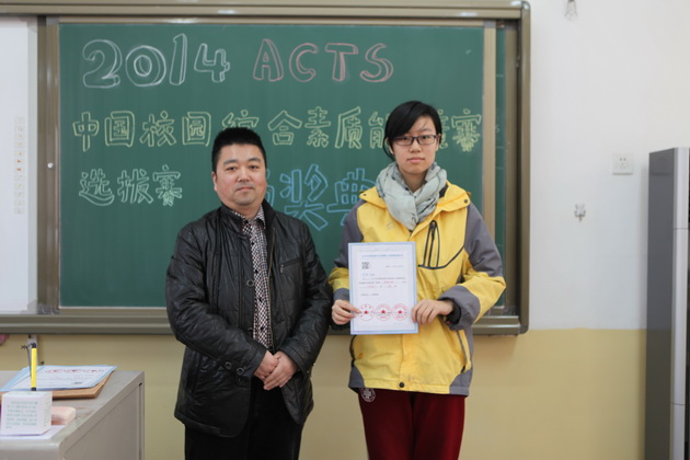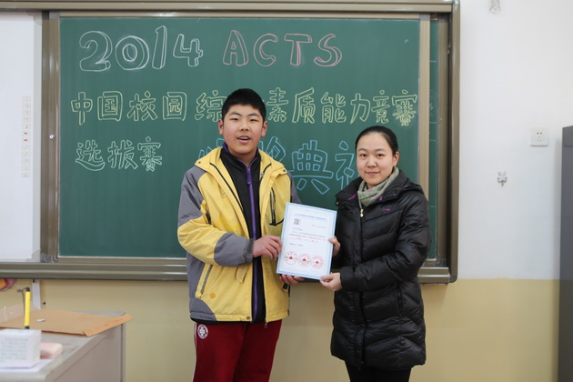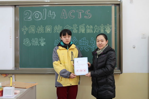曲江一中九年级学生李亦晨、沈键儒、刘采博、易小雨、贾麒冉、王新烨、田雨欣、辛思源、严梓艺、朱梓源、周雅婷、吕尚一、张钊源,八年级学生郝宇翔、李琦昱、赵静雅等16位同学在2014ACTS中国校园综合素质能力竞赛陕西赛区取得了1金8银11铜的好成绩,李亚鹏老师荣获“优秀指导教师”荣誉称号。