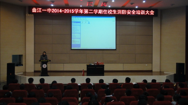为增强曲江一中全体住校生的消防安全意识和自我防护能力,开学伊始,曲江一中组织全体住校生,召开消防安全培训大会。曲江一中副校长曹琦,总务处主任王锦,曲江一中物业秩序主管全金峰等人参加了此次培训。