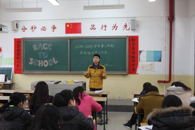 2015年3月6日下午,我校英语教研组在初2014级一班教室召开了2014-2015学年第二学期开学工作会。会议由英语教研组组长张亚权老师主持召开,常务副校长陈勇刚参加会议并做了讲话。