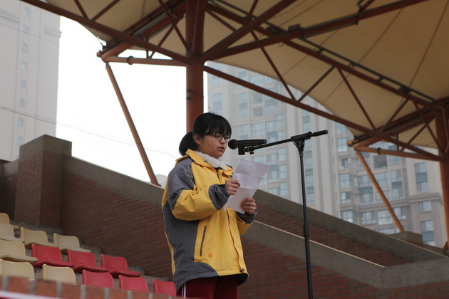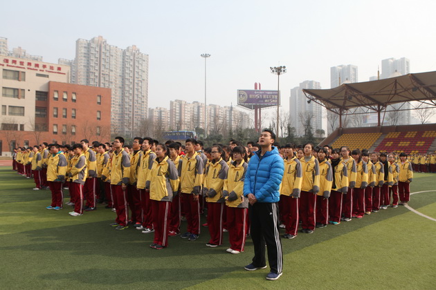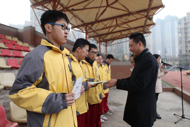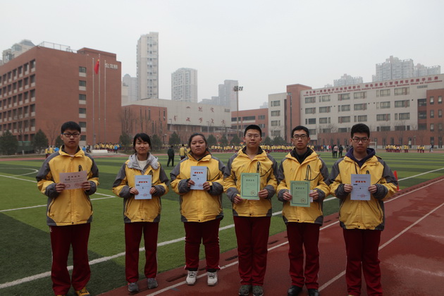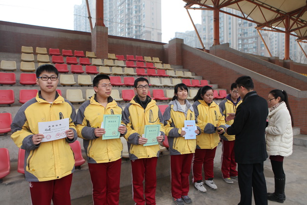 早晨9:50,升旗仪式准时开始。国旗护卫队迈着整齐的步伐走向旗台,在庄严的国歌声中,五星红旗冉冉升起。首先,陈校长进行讲话,他代表学校向全校师生致以最诚挚的新春祝福,对全校师生在过去一学期里艰苦拼搏,认真努力所取得的成绩表示感谢。同时对新的学期也提出要求,希望全校师生以坚定的信心、务实的态度、百倍的努力,全身心地投入到紧张而充实的工作和学习之中,在新的学取得更大的进步。接着,高一四班王一如同学作了题为《别放弃那1%》的国旗下讲话。随后,陈校长为我校在2014年全国中学生生物学联赛中荣获三等奖的闵天昊同学,在第28届中国化学奥林匹克(初赛)中获得三等奖的张彤、张书培同学和在2014年陕西省生物竞赛中获一等奖的靳影,三等奖的薛露欣、张俊宁同学颁发荣誉证书。为了鼓舞学生在新的学期以乐观、积极、向上的力量迎接新的挑战,最后同学们集体诵读了王湾的《次北固山下》 结束了第一周的升旗仪式。