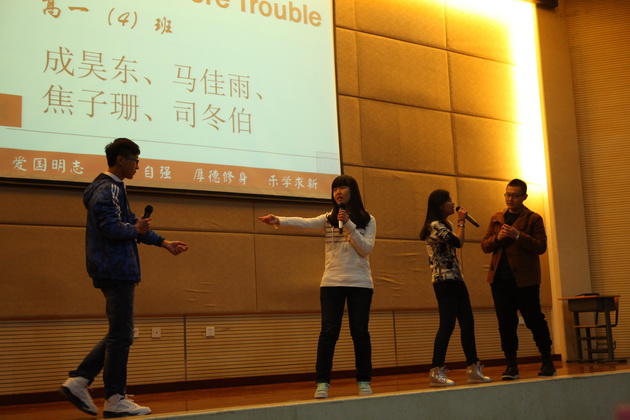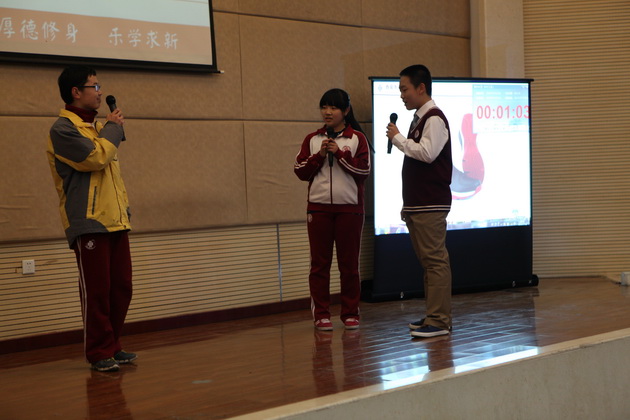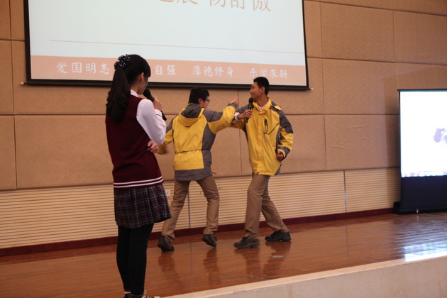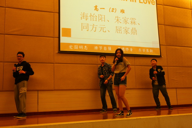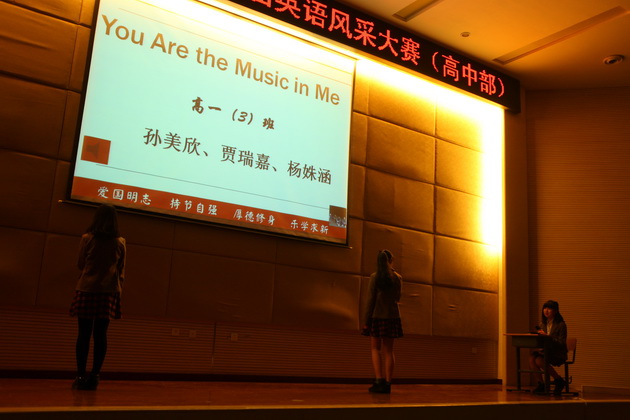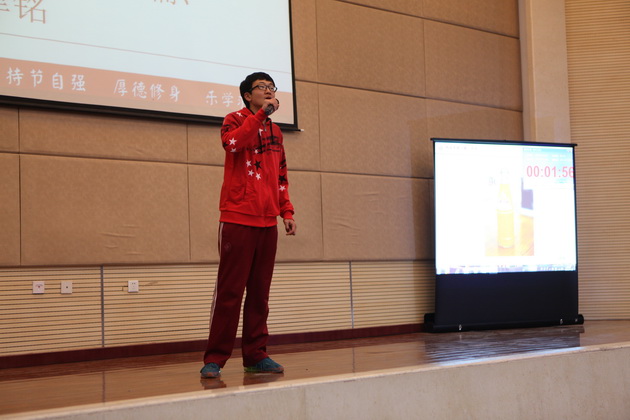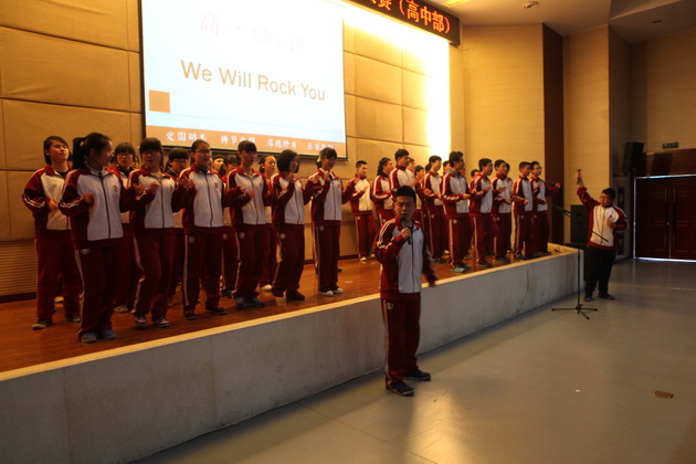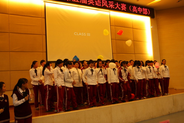 比赛在5位主持人流利的英文开场白中拉开帷幕。比赛形式分为个人演讲、广告创意、电影配音、英文歌曲演唱、英文歌曲合唱以及创意节目。来自五个班的同学分别对我最崇拜的人和科技的利弊作了精彩的演讲,以流利的口语,标准的发音,富有感染力的声音赢得了诸位评委老师的好评。在广告创意环节中,各班同学以聪明的才智、创新的思维,即兴表演为几种商品做广告,富有创新精神,获得评委、老师以及同学们的称赞。令人欣喜的还有精彩的电影配音环节,各班同学分别截取了电影《马达加斯加》、《超人总动员》、《冰河世纪》、《疯狂原始人》中的情节,进行了生动的配音,引人入胜,使人身临其境。还有更令人兴奋的是歌曲的演唱,各班选手们以火热的歌声,用激情带动了全场,各班同学也积极为演唱同学加油呐喊,显示了各班同学团结一致、积极向上的良好风貌,将整个比赛推向了最高潮。紧接着在班级大合唱的环节中,各班同学也都全力以赴,为争得班级荣誉而努力,展示出各班不一样的风采。来自二班和五班的创意节目更是别具风味,投入的演唱、热辣的舞蹈、充满激情的表演再次活跃了全场的气氛。最后主持人宣布了此次英风大赛的结果,二班以精彩的表演获得了第一名的好成绩。