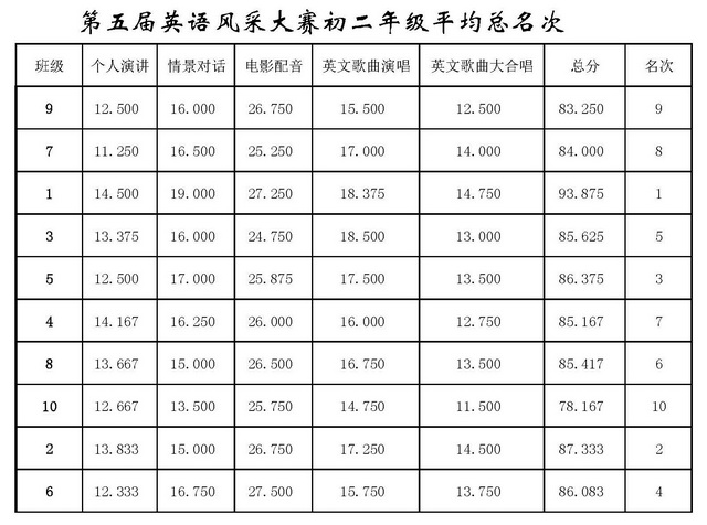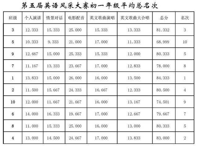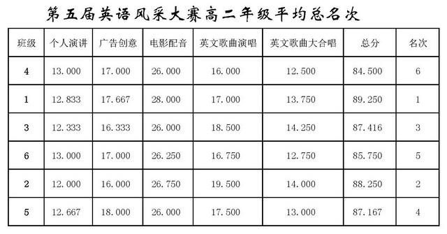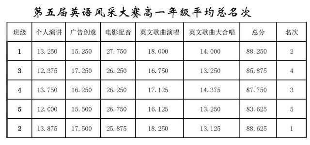 曲江一中第五届英语风采大赛结果