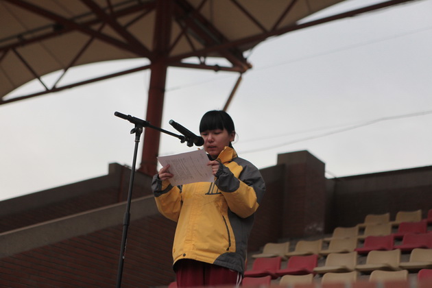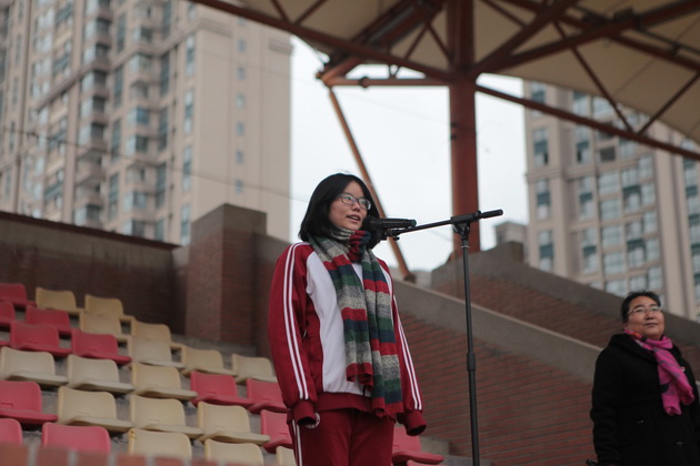 学生会干部高2016届六班宫美旭同学宣读值周检查评比结果