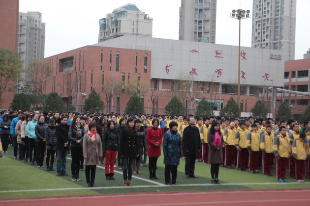 12月1日,我校师生在学校操场举行了第十四周升旗仪式。仪式由政教处主任余爱东主持。