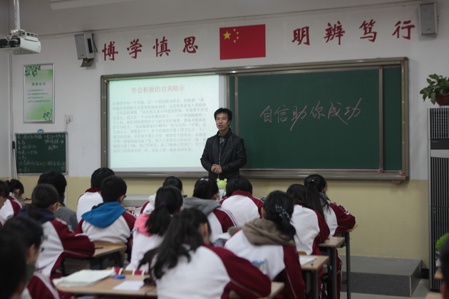2014年11月3日,高2016届各班召开了题为“自信助你成功”的班会,同学们深受鼓舞。高2016届1班本次班会课由班主任王老师主持,王老师以一个心理实验引入,阐释自信的重要性,以苏联学者的研究成果说明了人类大脑潜力无限,鼓励同学们每个人只要挖掘大脑潜能定会成功,真正自信的人正是如此,以克服困难的勇气和为实现目标而乐于付出的精神去挖掘自身潜能,赢得成功,班会上同学们自我鼓励,增强自信的手势设计、口头禅设计,把班会推向高潮。
