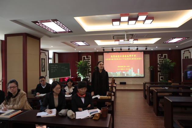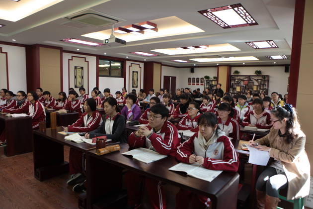 课后,两校语文教师欢聚一堂,积极评课,热情探讨“国学”的有效教学方法。在座谈会上,三原南郊中学的教师们对我校能在陕西省乃至全国率先开设 “国学”校本课程给予了高度评价,对我校在建校初就开展“国学”教育表示由衷的赞叹,希望曲江一中能共享“国学”教学资源,让“国学”尽快进入陕西省基础教育,发挥国学智慧,实现素质教育的均衡发展。