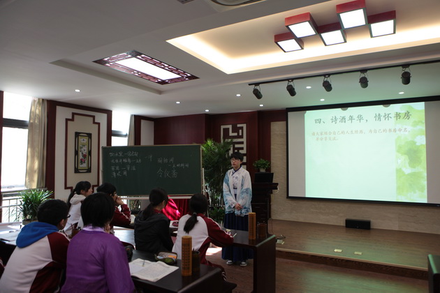 曲江一中语文教研组组长金慧介绍学校国学教学情况