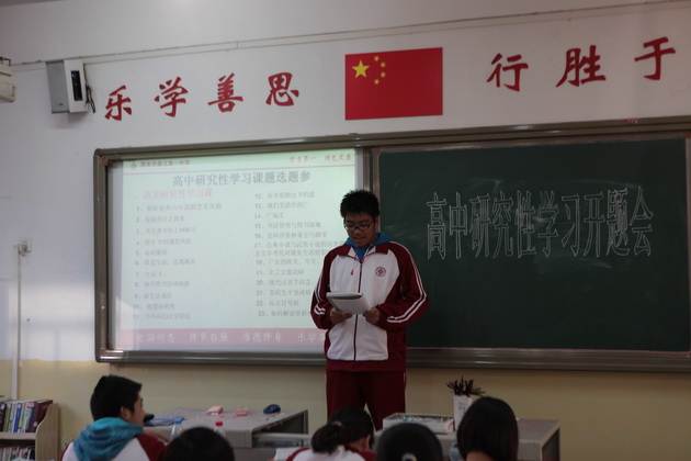 2014年11月5日下午第三、四节课,高2017届全体学生在各班班主任老师的指导下,召开研究性学习开题报告会。