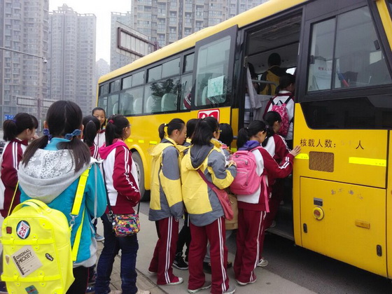 同学们乘校车前往大华·1935