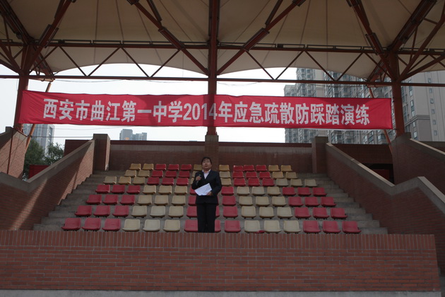 为了提高全校师生安全防范意识,加强对火灾、地震、踩踏事故的快速应变能力,曲江一中于2014年10月15日上午开展2014年曲江一中应急疏散防踩踏演练活动。