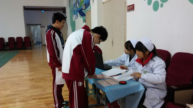 为维护我校学生根本利益,增强学生对健康的关注程度,使其更全面了解自身身体状况,做到有疾病“早发现,早预防,早治疗”,有效遏制各类传染性疾病在校园内传播,切实确保各项工作实施开展的正常秩序。为此,按照雁塔区教育局文件要求,雁塔区中小学生保健所协同我校医务室,精心组织、密切配合,于10月27日—10月29日在学校体育馆组织开展了2014年学生体检工作。