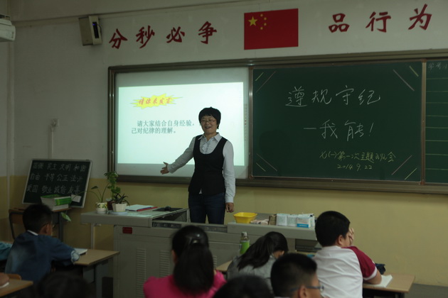 为营造和谐、文明的校园氛围,形成勤学守纪的班级风气,引导学生以纪律来确保学习效果,让学生能把规范的要求内化为自己自觉的行动,做一个文明的中学生,初2017届各班于2014年9月22日上午班会课时间举行了一场“遵规守纪 我能”主题班会活动。