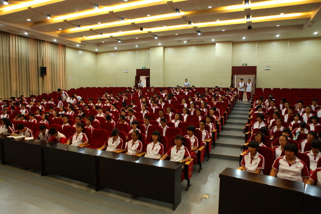 9月3日下午第四节课,高2017届全体学生在班主任老师的组织下,在学校报告厅参加了由年级组长彭鸿莹老师主持的学生月例会暨入学教育大会。