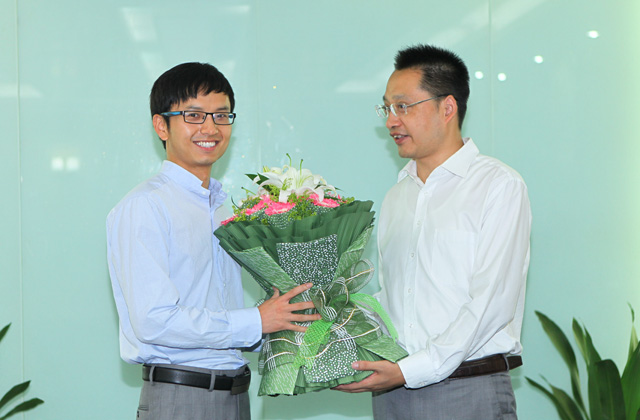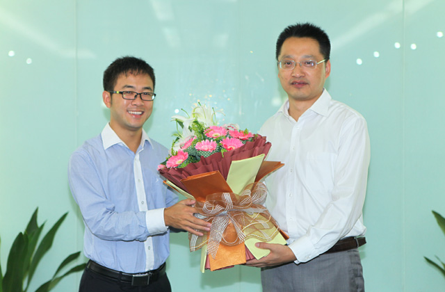 陈勇刚常务副校长为校级教学能手党锋超献花