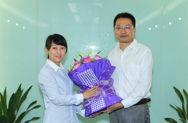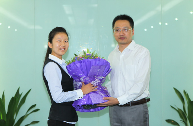 陈勇刚常务副校长向校级教学能手于静老师献花