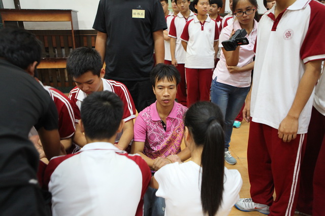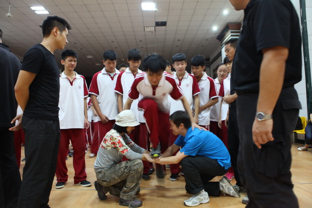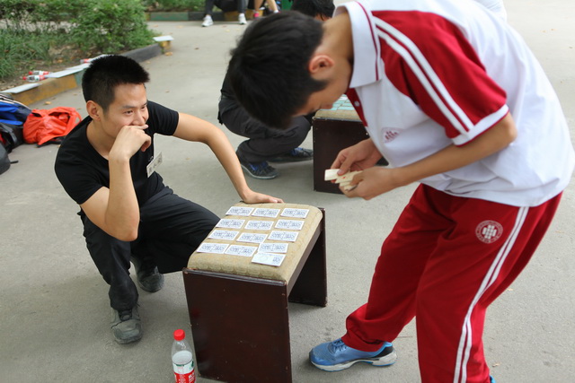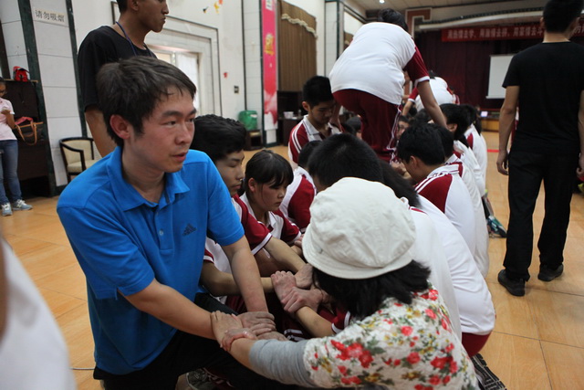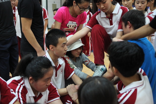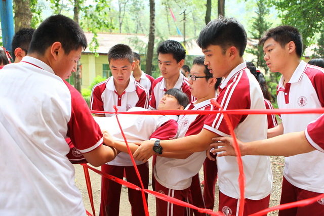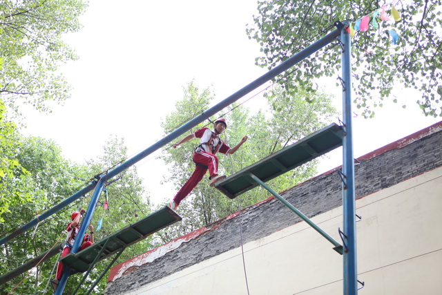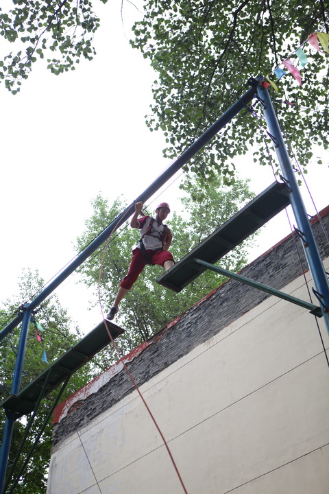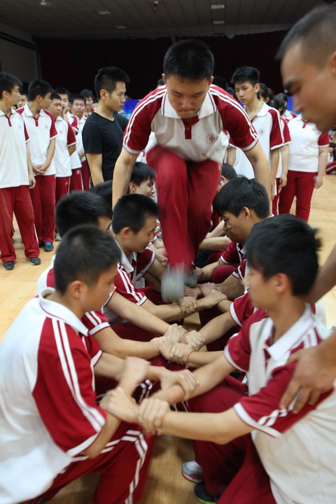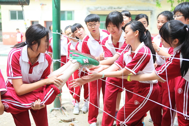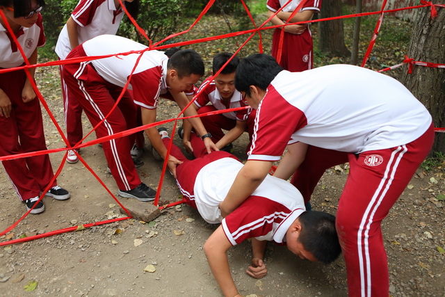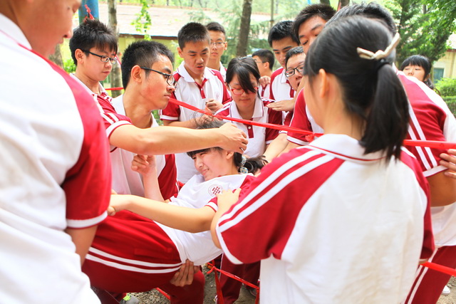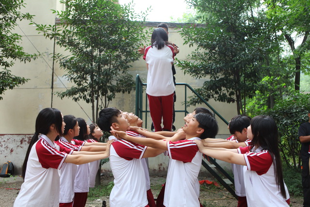 首先进行的项目是“信任背摔”。这使学生互相信任,互相支持、支撑。就像在生活中,父母、老师、朋友的支持可以是我们鼓起勇气,勇往直前。