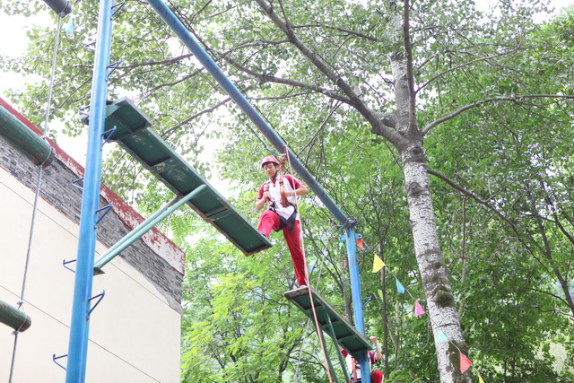 下午我们进行了“高空断桥”。这是对自我的一种挑战,对自己目标的一种追求,对带困难时的一种态度。就像在人生中你总会遇到困难,没有人时时刻刻会帮你,只有你自己勇敢面对,看准自己的目标不放弃不畏惧才会成功。