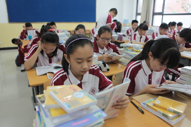 阅读是最好的美容。爱美的曲江学子一拿到新书就爱不释手,如饥似渴地默读起了自己喜欢的那本书——“书中自有黄金屋,书中自有颜如玉……”
