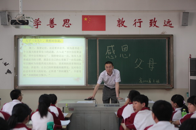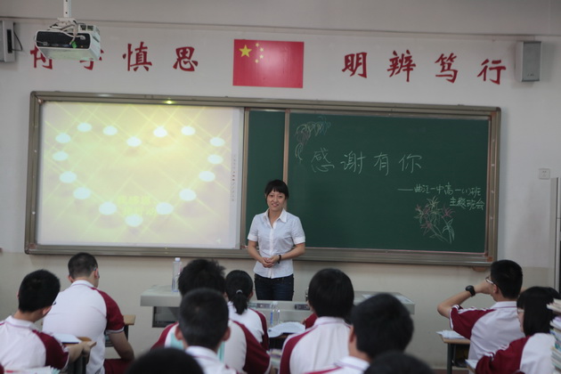 曲江一中高2016届1班“感恩父母”主题班会现场