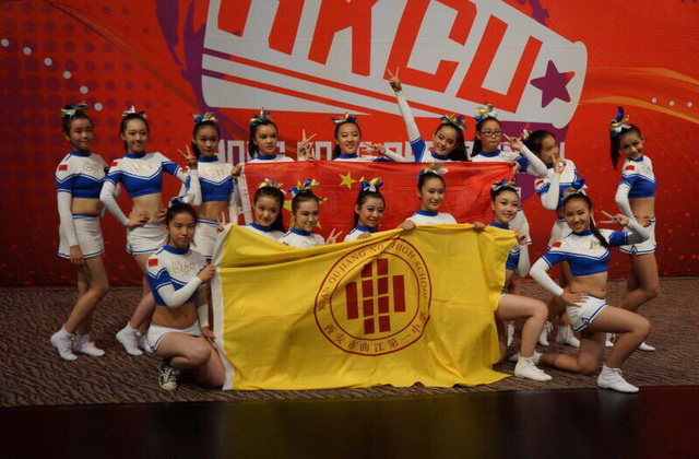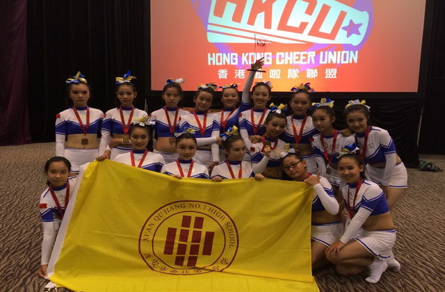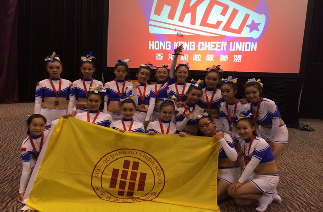由曲江到香江,我校啦啦操队一路闪耀走来,赢得一路喝彩!由杨欣怡、景辰香、白悦涵、李佳恩、杨嘉怡、纪雨婷、崔泽美、王宣弘、杨婷婷、杨德玮、何润妍、石雨菡、张宛雨薇、贺昕宇、马妍,范思怡(排名不分先后)16位姑娘组成的曲江一中啦啦操队6月25日抵达香港,将代表中国参加由香港啦啦操联盟组织的亚太地区啦啦操挑战赛。在经过2天的适应及训练之后,啦啦操队28号早晨到香港亚洲国际博览馆,经过热身准备和熟悉场地,17:00准时登场,孩子们一登场,她们灿烂的笑容,自信的表情就赢得了满场喝彩。音乐响起,随着节拍,她们整齐划一、刚柔相济的舞姿,青春洋溢、活力四射的魅力,完全征服了现场观众和评委的心,连来自多个国家和地区的十多个参赛队伍---我们的竞争对手都情不自禁为我们鼓掌!此时,现场的音乐声喝彩声和孩子们的舞姿成为主旋律;此刻,孩子们的突出表现掀起了比赛场馆的高潮! 最终,曲江一中啦啦操队取得初中组花球项目的第一名,捧回奖杯。
