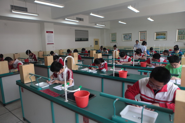 5月28日下午,我校在实验楼组织进行了初2014届学生物理化学生物实验操作考核工作。