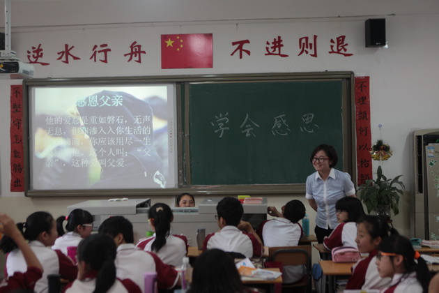 接着,在感恩父母的基础上,延伸到感恩师长的方面。结合现在学生特点,综合了学生日常与教师交往过程中的不良表现,这个话题的提出是很有必要的。在学校,学生来受教育,不仅是知识上的收获,也是习惯上的培养,更是道德上的历练。教师点明了同学们在办公室的不良行为和日常交流行为,学生们以反思和争鸣的方法区分好坏,以戒后日。