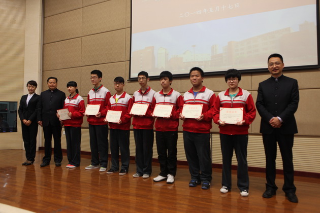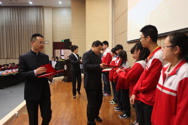 边校长、陈校长、曹校长为优秀毕业生颁发荣誉证书