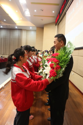 毕业典礼在雄壮的国歌声中开始,浓浓的爱国热情涤荡着每一位同学的心灵。毕业典礼由政教处余爱东主任主持,余主任动情的话语,让同学们感慨良多!之后由陈勇刚校长致毕业赠言,陈校长给同学们送上殷殷期望,希望毕业生们感恩父母,不忘师恩,关注母校,同学相望,继续拼搏竞进。有了学校校长和老师的嘱托,高三四班高佳炜的家长作为家长代表也表达了对这届毕业生们的良好祝福和对曲江一中的感谢。最后学生代表高三三班王佳浩同学发言,他表达了对母校的感恩,对分别的不舍,对未来学习生活的信心和向往。带着学校、家长和同学的祝福,大家最后将陪伴自己走过高中三年时光的老师们请上主席台,献上鲜花和致以最诚挚的感谢。