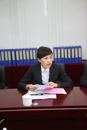 曲江一中副校长曹琦向马处长一行汇报学校消防安全工作情况