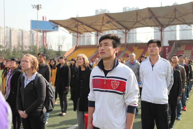 3月17日,我校师生在学校操场举行了第六周升旗仪式。仪式由政教处副主任刘瑜主持。