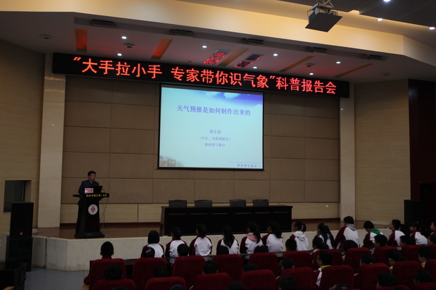 2014年3月19日下午,我校“曲江一中大讲堂”有幸邀请到陕西省气象台梁生俊台长在报告厅为七年级全体师生带来了一场别开生面的气象报告。