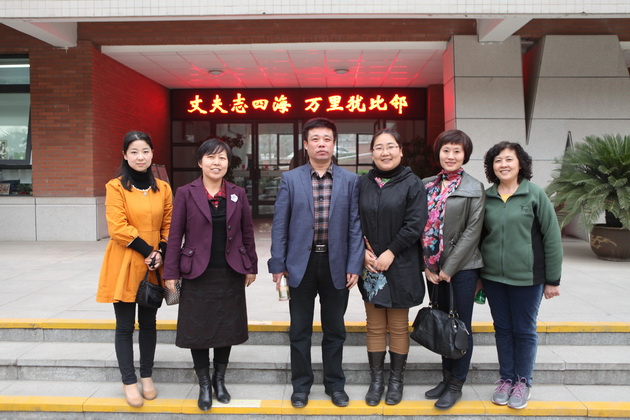 学校办公室兼政教处主任余爱东与梁生俊台长一行合影留念