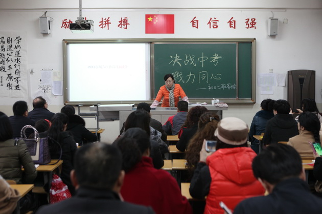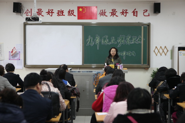 家长会的第二个环节在各班教室进行。各位家长进入教室,同各班主任老师做更详细的交流,并就九年级的学科组成、体育测试等情况作了详细介绍,各中考科目代课老师也结合本科目特点及本班级存在的实际问题,作了详细的发言。