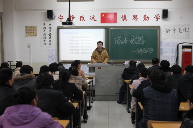 随后,年级组长陈金叶老师作了热情洋溢的讲话,他代表初三年级全体教师向家长们对学校各项工作的支持表示感谢。陈老师就开学工作、年级规划、毕业班教育教学工作等方面向家长作了介绍,同时详细分析了初三学生的学情、年龄、心理特征,提出了针对性强、切实可行的要求及建议,例如强化家庭教育意识,努力提高家庭教育质量;对孩子要有信心等等。