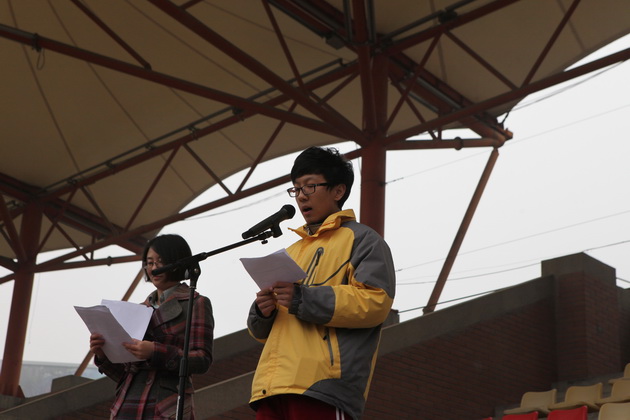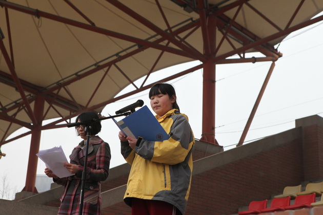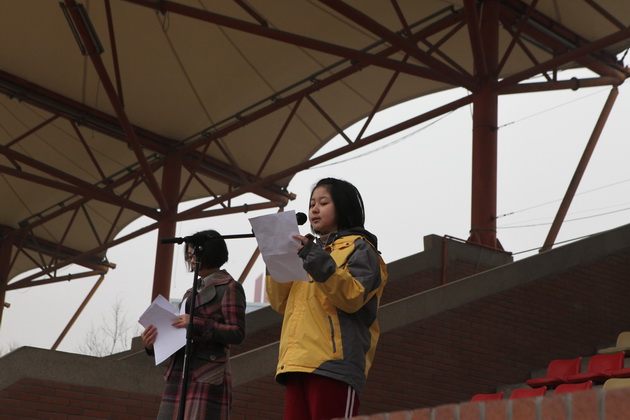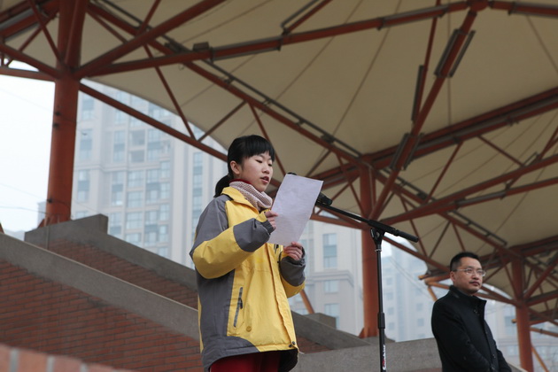 学生会纪检部部长毕雪儿同学宣读学校禁烟倡议书