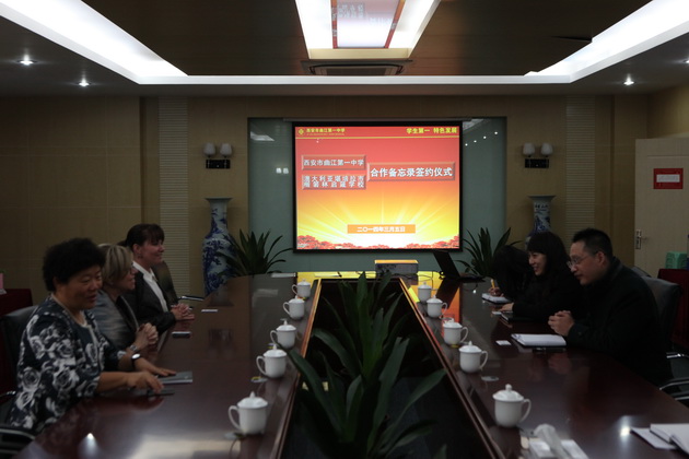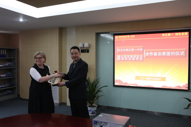 2014年3月5日早上,澳大利亚堪培拉市楷箬林启箴学校校长Wendy Wurfel女士一行三人来访西安市曲江第一中学。