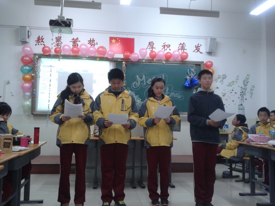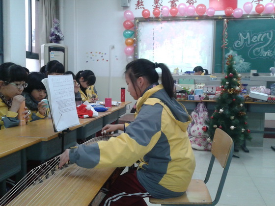 12月23日下午,初2015届与初2016届英语特色小班联合举办圣诞联欢会。全体英语特色班73名学生以及两名英语任课老师和部分任课老师班主任等都参与到此次活动中。联欢会为全英文形式,主持人的主持词,所有节目,以及观众互动都是以英文形式呈现的。节目形式多样,内容新颖:首先以八年级一班的一个小品《together》拉开了帷幕。随后七年级一班窦文悦和石雨菡的古筝合奏《渔舟唱晚》更是增添了联欢会的艺术氛围。在中间的几个环节里,集体活动如击鼓传花,抢凳子,心有灵犀等都把此次联欢会带入了高潮。更激动人心的是每位学生及老师都带来了一个礼物,这75个礼物被随机编号,然后在联欢会上被每位学生重新抽取,这样每位学生都会得到一个神秘圣诞礼物。此活动也为该联欢会增添了许多乐趣。在联欢会的最后,全体同学以一首“Merry Christmas”为本届圣诞联欢会画上了完美的句号。