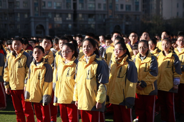 12月9日,我校师生在学校操场举行了第十六周升旗仪式。仪式由政教处主任余爱东主持。