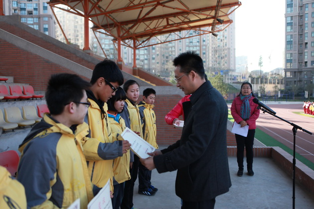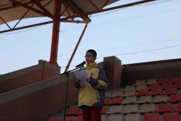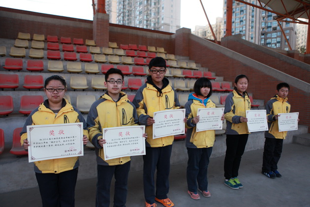 仪式第二项,初二1班许笃诚作了题为《给2013画上句号》的国旗下讲话。仪式第三项,初二2班陈奕彤同学宣读了上周值周检查结果。仪式第四项,政教处主任余爱东宣读了上周宿舍检查结果。最后,学校常务副校长陈勇刚为我校初三年级“保护空气、爱护水资源”手抄报比赛获奖班级颁发了奖状。