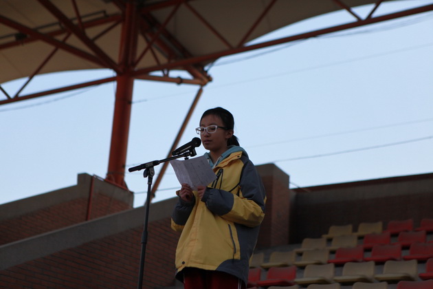 仪式开始前,余主任做了讲话,她强调: 12月9日是爱国运动纪念日,我们青年学子要牢记历史,意识到自己肩上的重任,因为我们肩负祖国的未来、名族的希望。她号召大家要奋发图强、开拓进取、努力学习科学文化知识,实现中华民族的伟大复兴!
