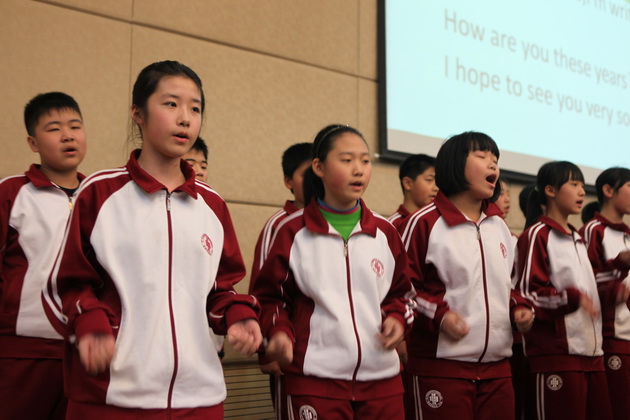 “个人演讲”慷慨激昂:“My father is my hero”“books are my friends”表现了孩子们对生活的热爱;“情景对话”机智风趣,一个个动人场景让人捧腹;“电影配音”妙趣横生:一幅幅精彩的画面引起观众阵阵掌声和笑声;“英文歌曲合唱”让人热血沸腾:歌伴舞的《Baby 》热情四射,《firework》恣意奔放……“大合唱”环节五个班同学一一登台,淋漓尽致地表现出各班最团结、最美好的一面。