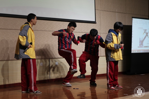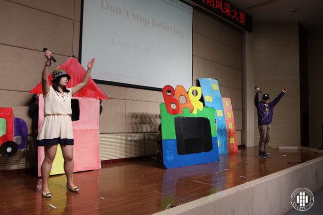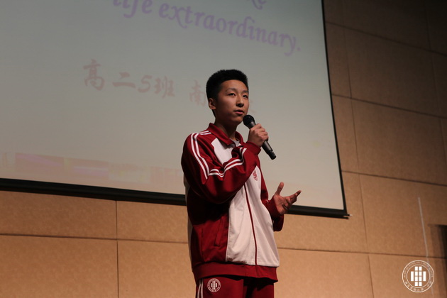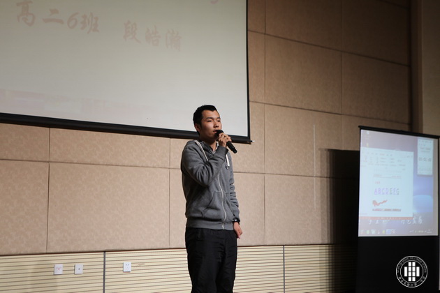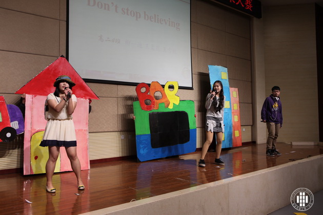 赛事共分个人演讲、广告创意、电影配音、英文歌曲演唱和英文歌曲大合唱五个部分。在个人演讲阶段,选手们妙语连珠、舌绽春华,流利的口语表达、到位的肢体表达感染了在场的每一位观众,不断赢得阵阵掌声。经过激烈角逐,高二(5)和(1)、(6)班分获一、二、三名。如果说个人演讲展示了选手的口语感染力,那么广告创意则更是考验选手在口语之外的创新能力。各位选手摩拳擦掌,各呈奇思,引来现场观众的接连惊异和由衷掌声。最后高二(3)获得第一名,(4)、(6)分获二、三名。在电影配音阶段,经典桥段加上选手们投入真挚的表演令全体观众似乎又重温了影院中的回忆。高二(3)班选手凭借出色的口语和优异的表现夺得第一,(1)、(5)班分列二、三名。在接下来的英文歌曲演唱和大合唱中,全场气氛为之振奋和激荡,不少观众离开座位随之节奏舞动。各个班级可谓八仙过海各显其能,竞争非常激烈,最后高二(1)班在个人演唱和合唱环节中力压群雄,夺得魁首。