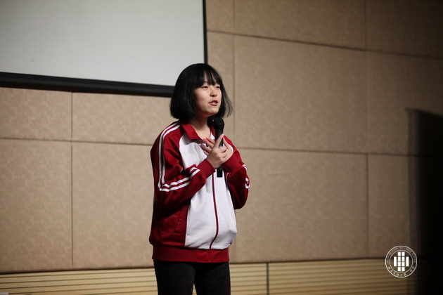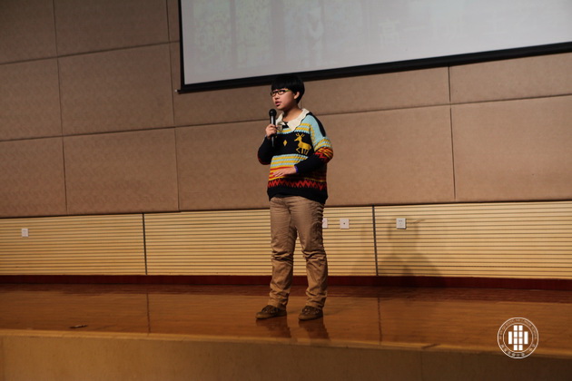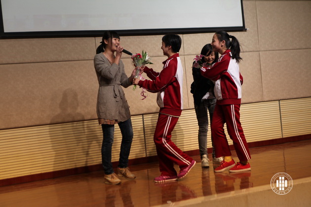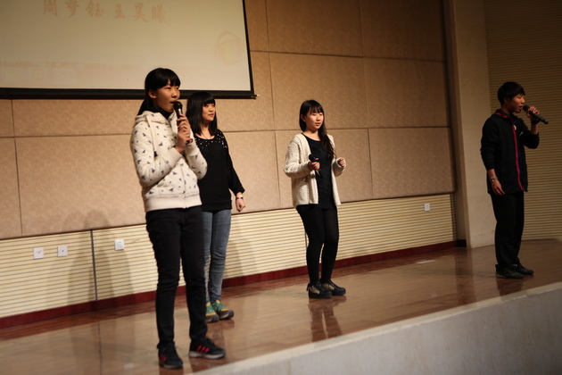 第一个部分——个人演讲。以“Dream In My Heart”或者“Attitude Matter A Lot”为题目进行演讲。同学们精心准备,大胆发挥,完美的ppt背景与精彩的演讲相得益彰。5班演讲者为一名日籍华人,他微带日本口音的发音及憨厚的表情惹得在场观众阵阵欢呼。
