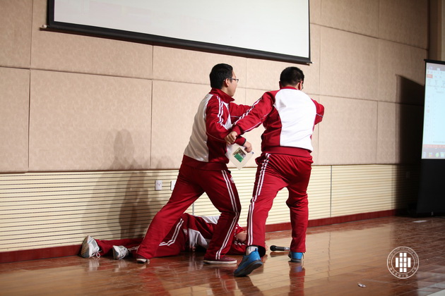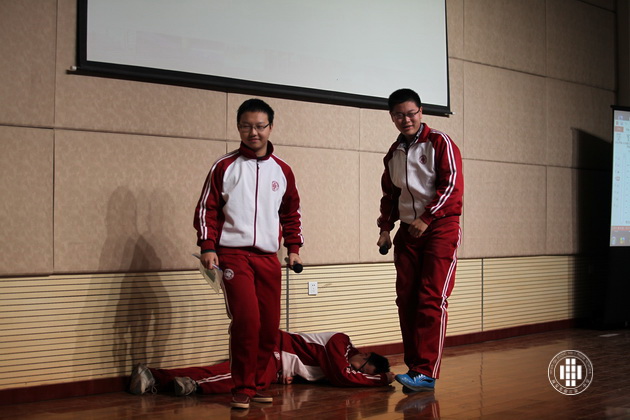 第二部分——广告创意。每班临时抽题,没有任何的提前准备,同学们集思广益,发散思维。这一环节充分展现了同学们的英语表达能力和临场发挥能力。2班同学在为某一感冒药做广告时,以夸张大胆的肢体语言,戏剧化的情节博得了大家阵阵掌声。