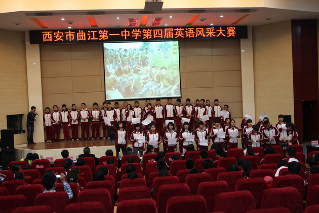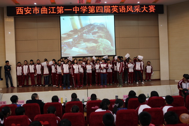 2013年11月27日下午曲江一中第四届英语风采大赛高一年级组在报告厅举行。同学们在个人演讲、广告创意、电影配音、歌曲演唱、班级合唱、创意节目六个环节中展示了个人才华,展现了班级凝聚力。