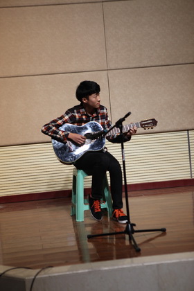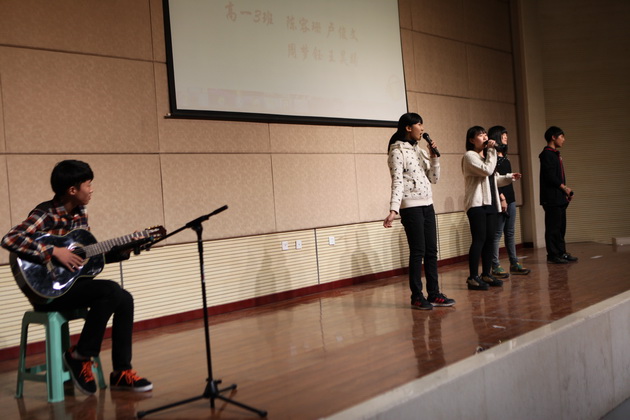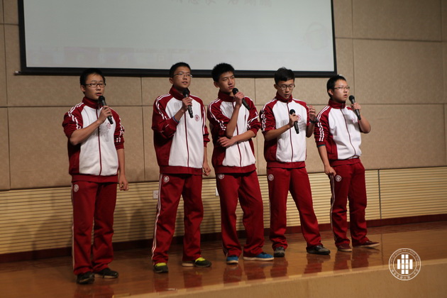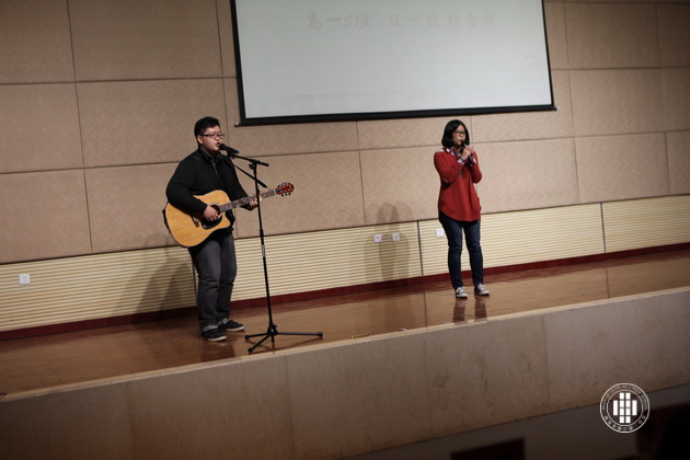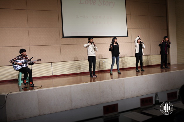 第四部分——英文歌曲演唱。各班代表大显身手,或独唱,或乐器伴奏,或小乐队表演展现了新时代少年的素质和才艺。每逢有同学台上唱歌时,台下同班同学持续鼓掌呐喊,一次次将大赛气氛推向高潮。其中4班的双人合唱,节奏轻快,声音恬静,小清新特点在年级表演中令人耳目一新。