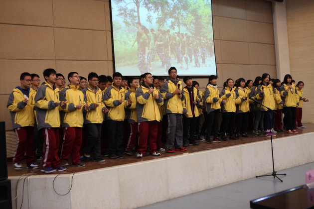 第五部分——全班合唱。这一环节集中展现了班级风貌和班级凝聚力。1班、2班沉稳有素,队伍严整;3班、5班歌声悠扬,感情动人;4班变换队形独具匠心。